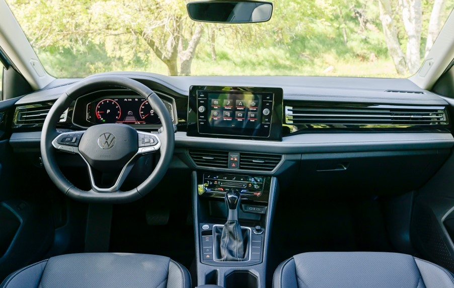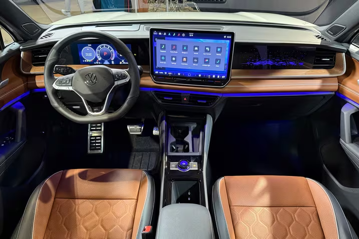 On the outside, the 2025 Volkswagen stands out with sleek LED matrix headlights, a bold front grille, and